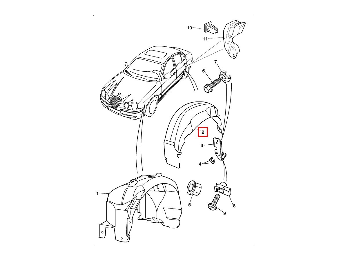 Rear wheelarch liner for Jaguar S-Type V6 2.5, 3.0, 2.7D, V8 4.2 & 4.2 SC between 2004 and 2008 from VIN N13089.